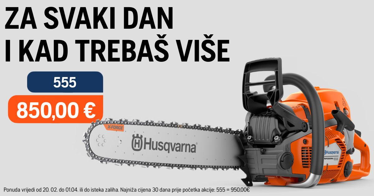 Husqvarna 555 razvijena je za zahtjevne radove izvođača radova i vlasnika zemljišta. Pila ima revolucionaran dizajn i napunjena je sirovom snagom za učinkovit rad. Naša jedinstvena tehnologija motora X-Torq® pruža više snage tamo gdje vam je potrebna, do 20% manju potrošnju goriva i 75% manju emisiju ispušnih plinova.