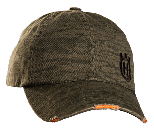 Tamnozelena kamuflažna šilterica starinskog izgleda s podesivim kožnim remenom. S prednje strane nalazi se ušiveni Husqvarna logo crne boje dok je prednji rub šilterice jarko narančaste boje. Jednostavno podesite remen straga  i kapa će savršeno pristajati na vašoj glavi.